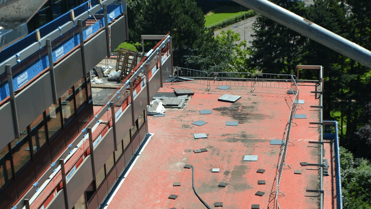 De oorspronkelijke stalen borstweringscassettes zijn in de langsgevels weer teruggeplaatst, gecoat in de originele kleur en voorzien van nieuwe isolatie. In de kopgevels zijn de cassettes vanwege de transparantie en het zicht op de terrassen vervangen door glazen panelen.